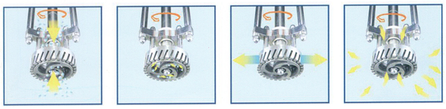 物料在水鍋、油鍋內(nèi)通過加熱、攪拌進(jìn)行混合反應(yīng)后,由真空泵吸入乳化鍋,通過乳化鍋內(nèi)上部的攪拌、聚四氯乙烯刮板迎合攪拌鍋形體,掃凈刮壁粘料,使被刮取的物料不斷產(chǎn)生新界面,再經(jīng)過葉片與回轉(zhuǎn)葉片的剪斷、壓縮、折疊,使其攪拌、混合而向下流往鍋體下方的均質(zhì)器處,物料再通過旋轉(zhuǎn)的切割輪與固定的切割套之間所產(chǎn)生的強(qiáng)力的剪斷、沖擊、亂流等過程,在剪切縫中被切割,破碎成200nm-2um的微粒,由于乳化鍋內(nèi)處于真空狀態(tài),物料在攪拌過程中產(chǎn)生的氣泡被抽走。